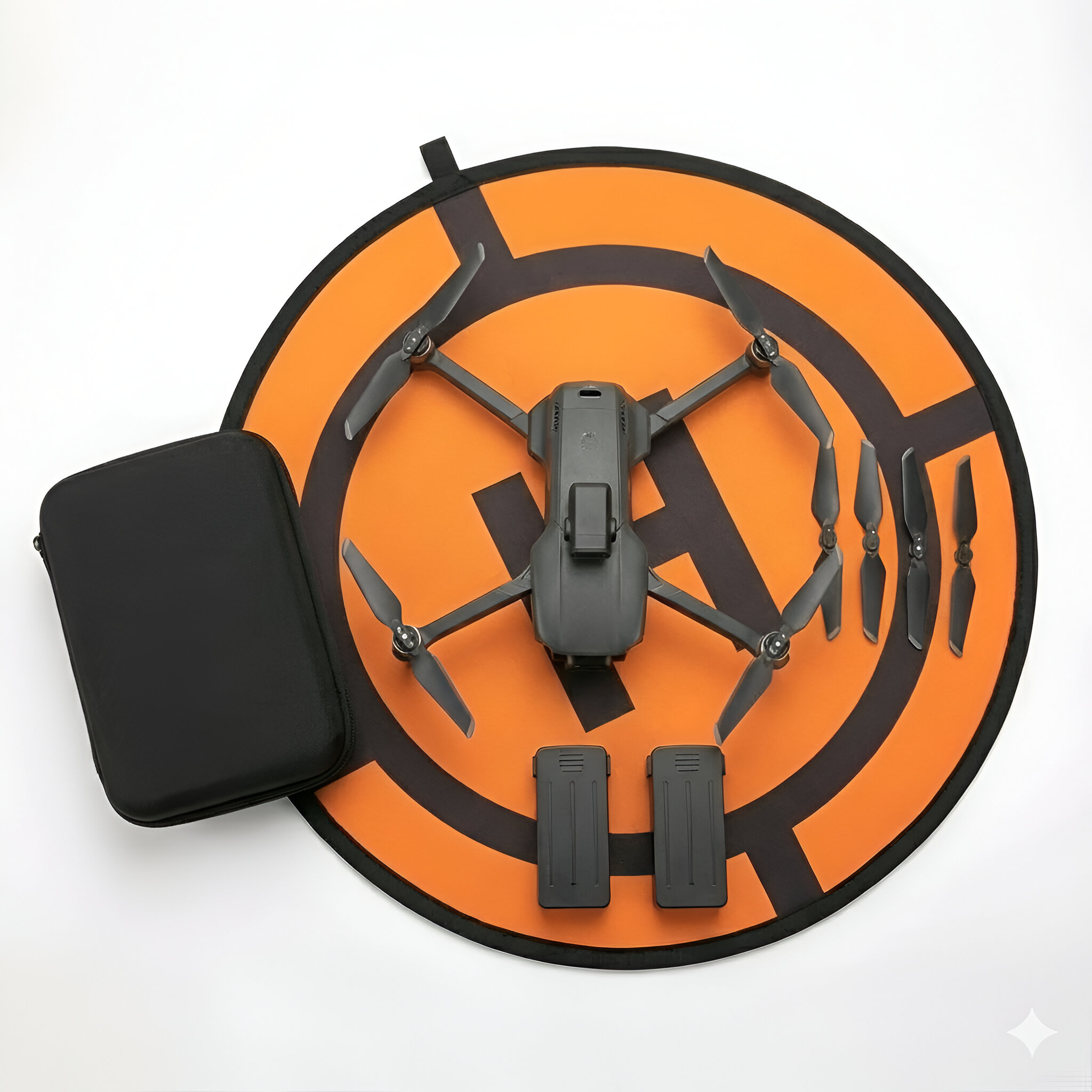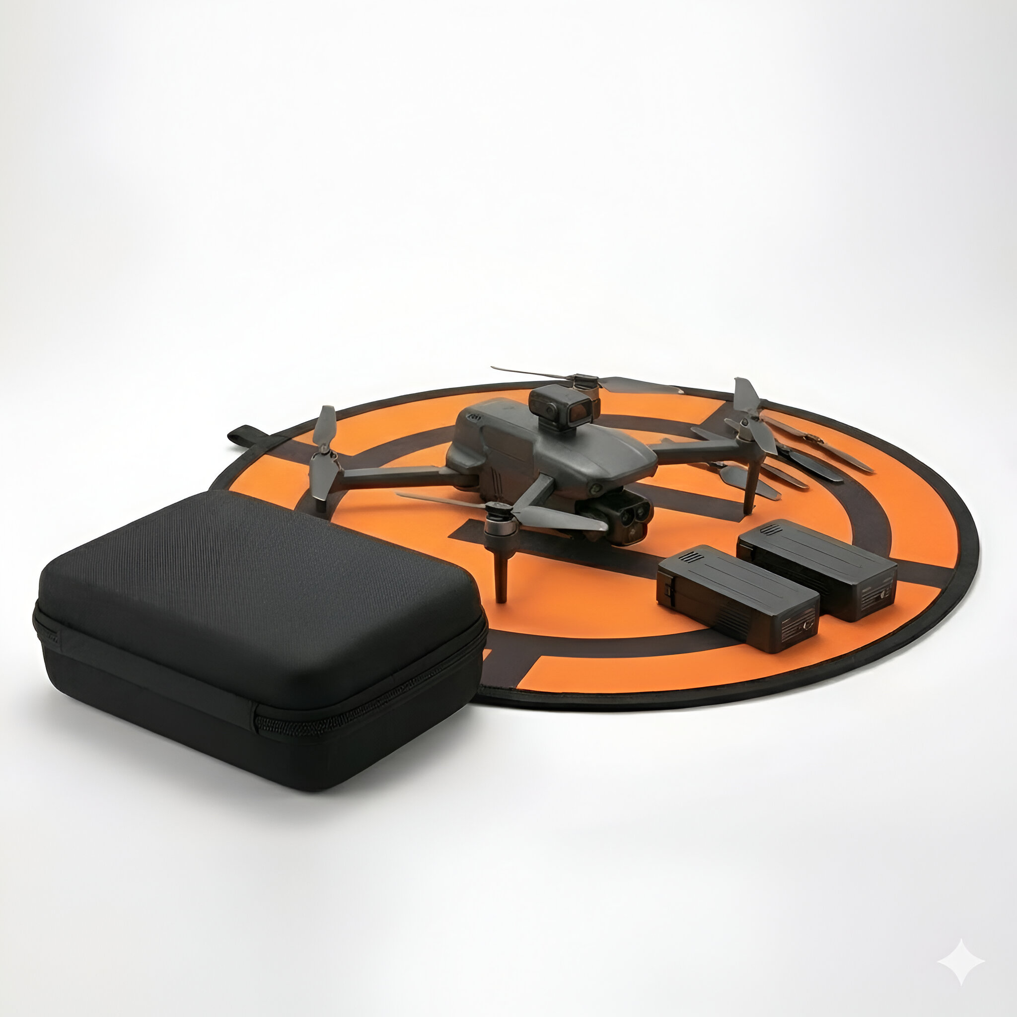 אך הכוח האמיתי של הבאנדל הזה טמון באביזרים הנלווים שמשדרגים את הביצועים: משטח נחיתה מקצועי (Landing Pad) ששומר על המצלמה והמנועים מאבק וחול בכל המראה, שתי סוללות נוספות המעניקות זמן אוויר ממושך ללא דאגות, ותיק נשיאה קשיח שמרכז את כל הציוד בנוחות מקסימלית.